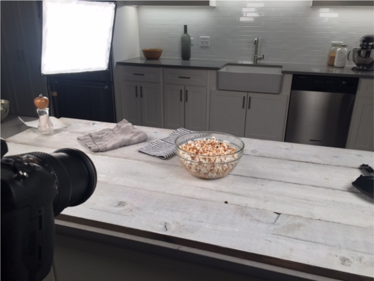 To make sure that the process kicks off as smoothly as possible, I measure out all ingredients before the shoot begins. I also make sure all props we’ll be using to dress the set are ready to go. I’m always stocked with paper towels and Lysol wipes for those inevitable spills.