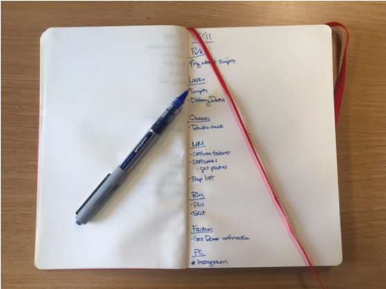 I create a new to-do list for myself to follow every day. I have a whole team to keep on track so it’s super important that I, myself, am organized.